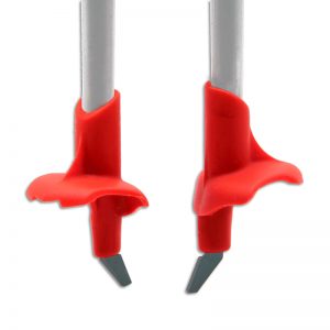 Le aste superiori curve sono verniciate di due colori diversi per permettere all’utilizzatore di distinguere facilmente e velocemente il bastoncino destro, in verde, da quello sinistro, in arancio.
