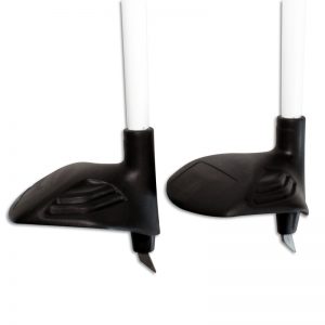 • Le aste superiori curve sono verniciate di due colori diversi per permettere all’utilizzatore di distinguere facilmente e velocemente il bastoncino destro, in verde, da quello sinistro, in arancio.