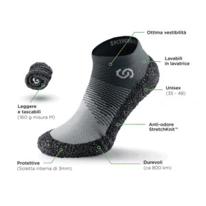 La tecnologia GRIP:IN, unita alla composizione multimateriale della calza, riduce il rischio di distorsioni ed il sollecito delle articolazioni garantendo una maggiore stabilità, velocità e precisione.
